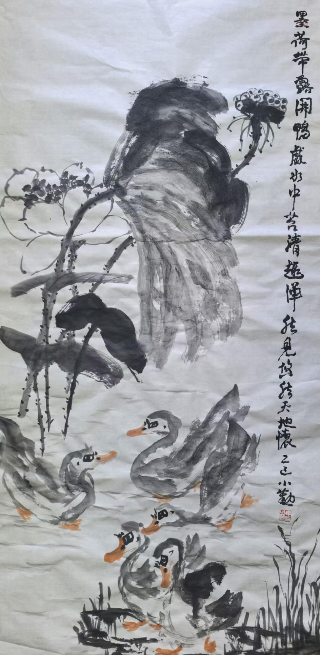 申小勤深研八大山人孤高简远之境,融徐渭泼墨狂放、昌硕金石苍劲、白石翁天趣童真、板桥竹石风骨、宾虹积墨浑厚、抱石散锋酣畅 、莫奈的光影色彩理解 。 践行"三立三承"之道,