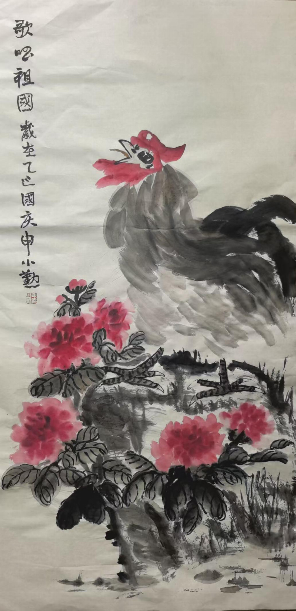 总而言之,申小勤女士以笔为骨,以墨为血,以彩为魂,将“鸡”这一题材提升到了一个全新的美学高度。她画的不仅是禽鸟,更是风骨,是气度,是生生不息的民族精神与时代强音。在其画作前,我们能感受到一种蓬勃的生命力扑面而来,那金石般的铮铮傲骨与锦绣般的灿烂华彩,共同谱写了一曲关于力量、尊严与希望的赞歌。