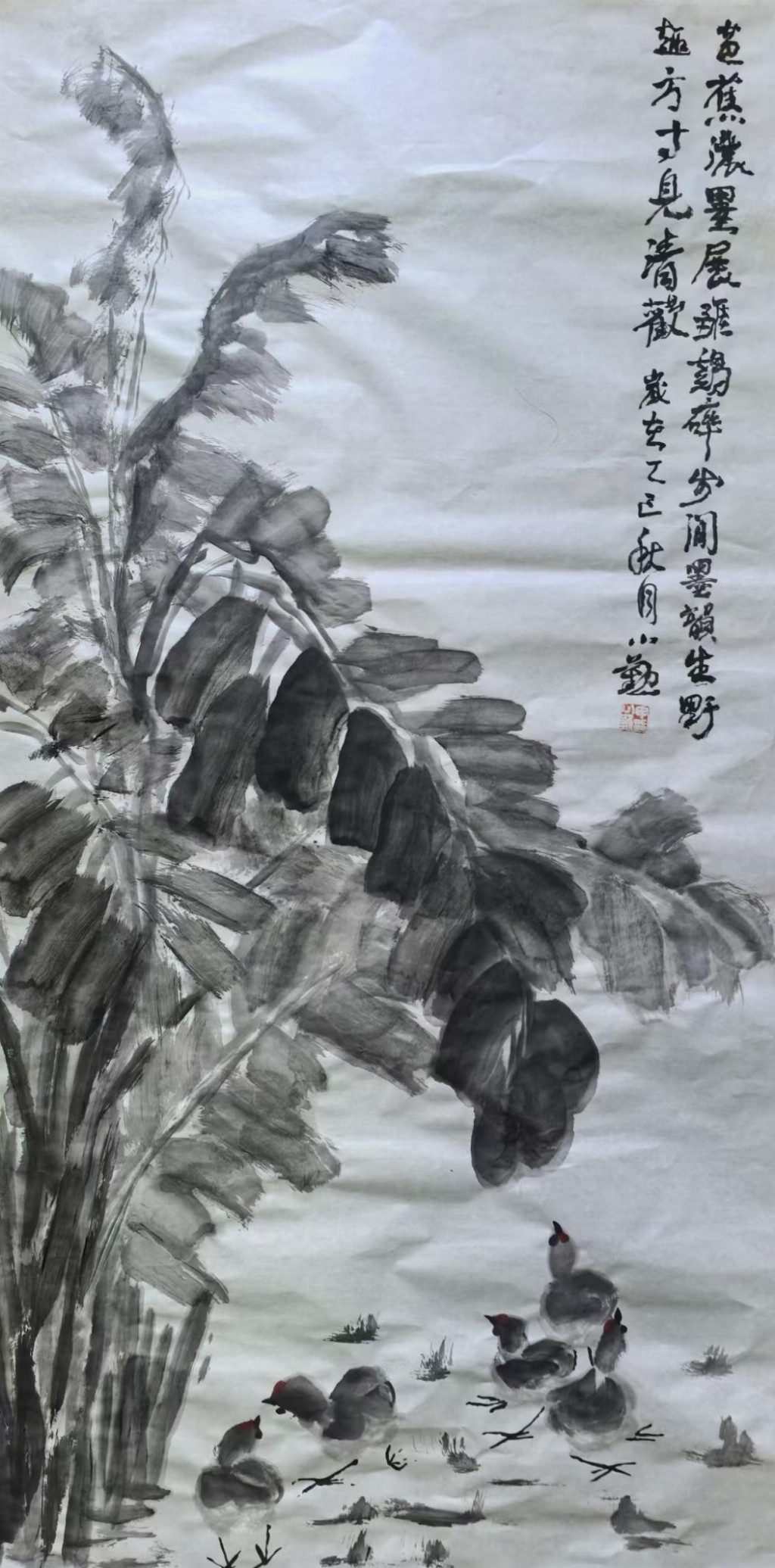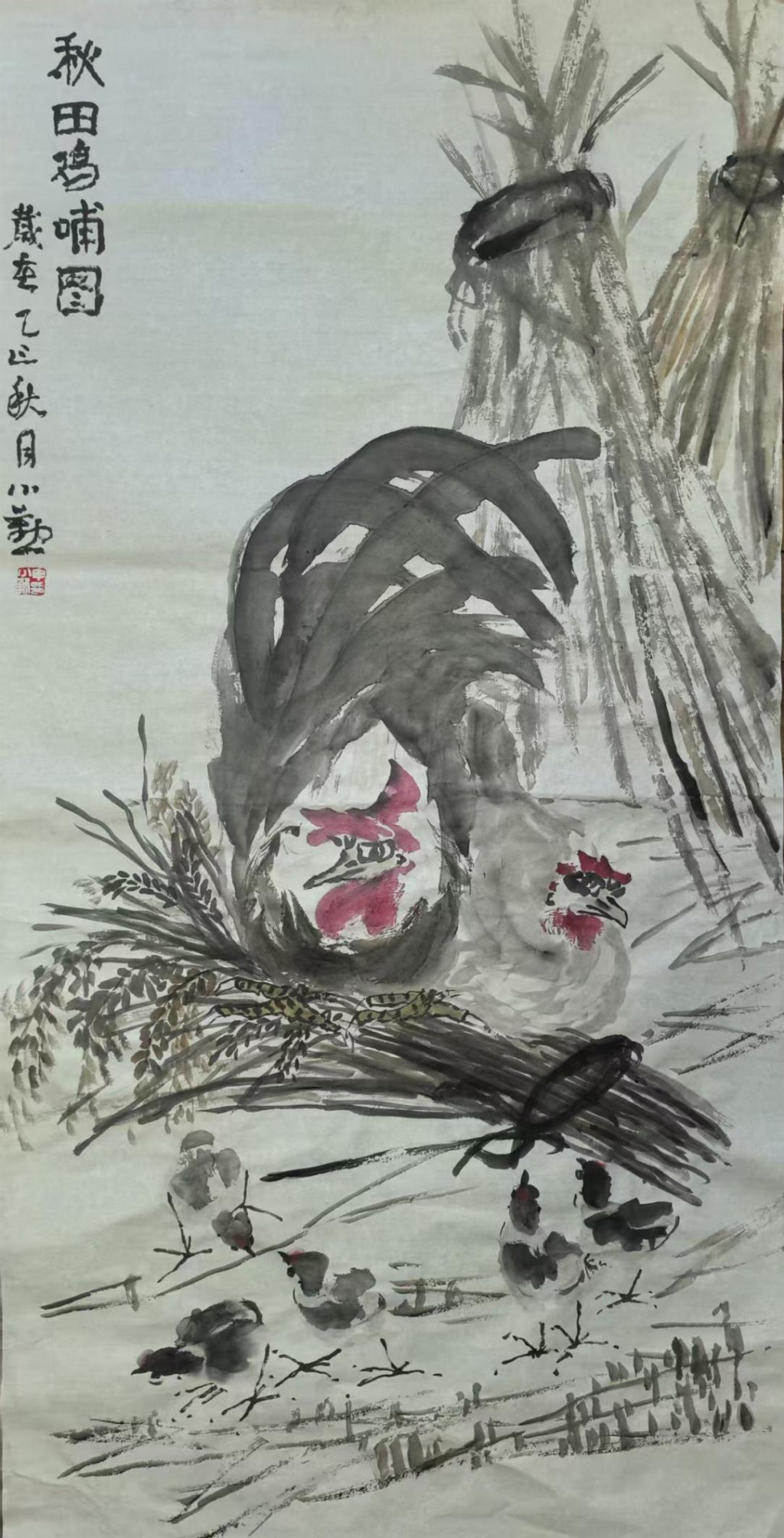 这不仅是画一只鸡,更是托物言志。她笔下的鸡,是“一唱天下白”的使者,驱散长夜,唤醒黎明;是“风雨如晦,鸡鸣不已”的君子,在逆境中坚守信念,矢志不渝;更是昂首阔步、自立自强的精神象征。这种意蕴,连接着中国文人画“比德”的传统,又与现代人所倡导的奋进、守信、昂扬向上的精神内核紧密契合,从而使她的作品具备了穿越时空的艺术感染力。